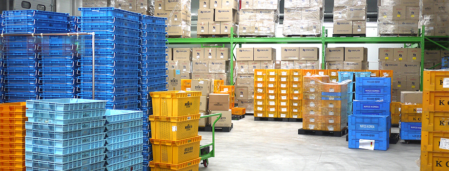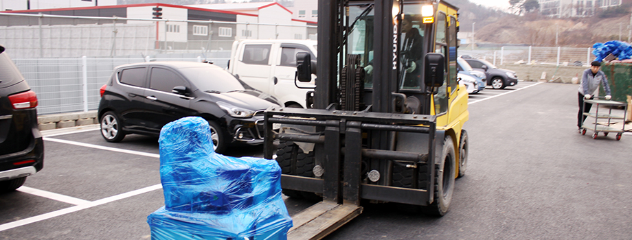 부자재 파레트화 작업 및 랩핑 포장작업 진행