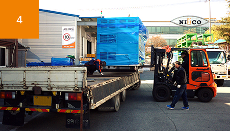 물품특성에 맞는 차량을 사용하여 상차작업 진행